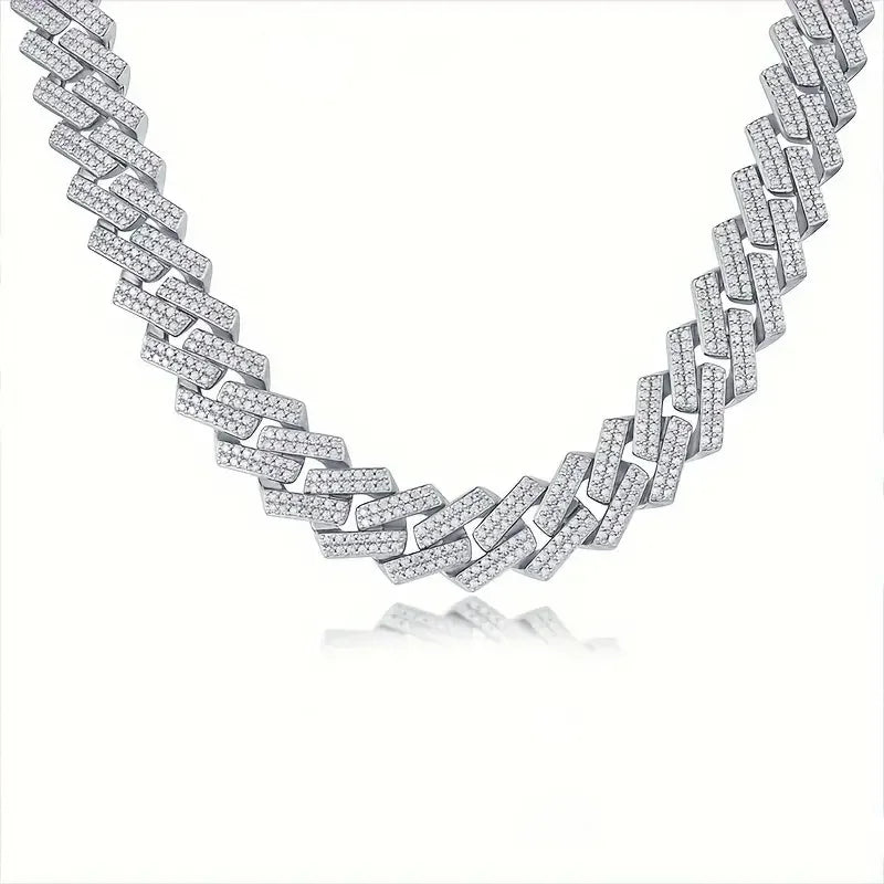 1pc Moissanite Necklace 925 Sterling Silver 18K Golden Plated Cuban Chain, Hip Hop Cuban Necklace Cuban Clavicle Chain For Men