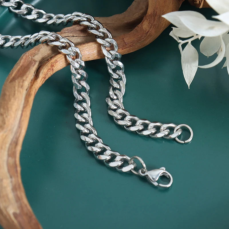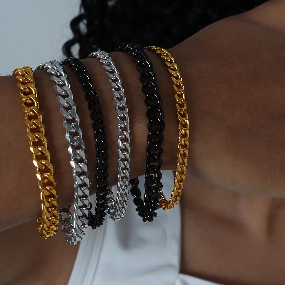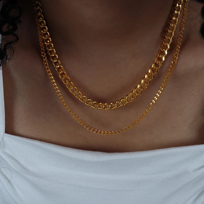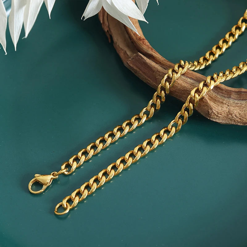 3MM5MM7MM Cuban Link Chain Stainless Steel Necklace Waterproof Gold Plated