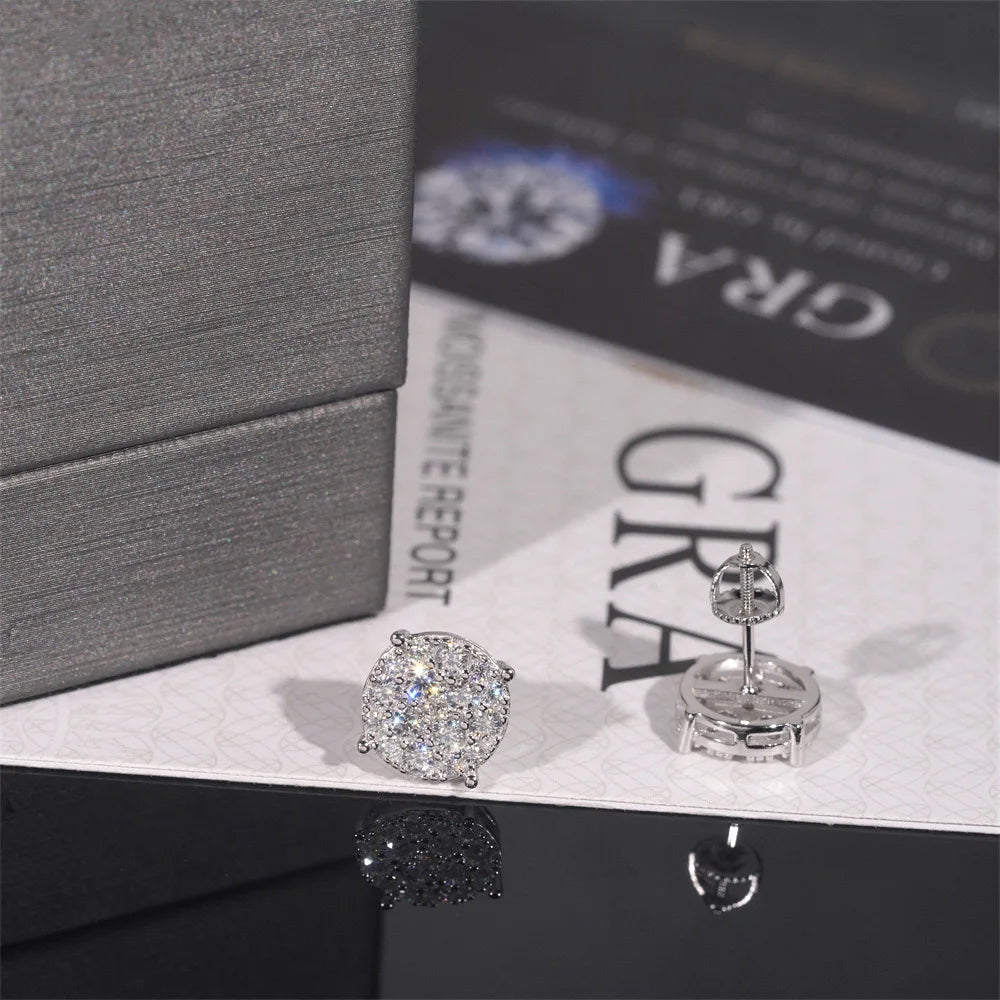 9.8mm Iced Moissanite Cluster Earrings Screwback 925 Sterling Silver