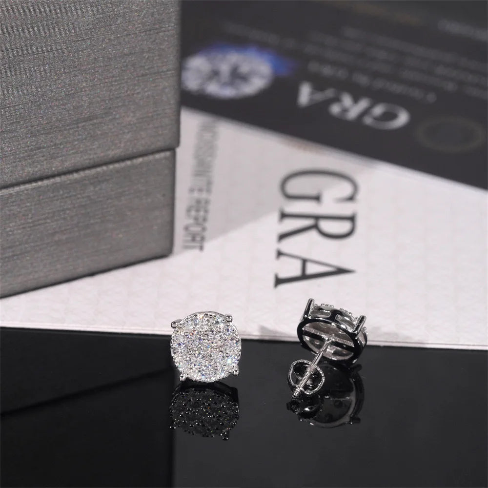 9.8mm Iced Moissanite Cluster Earrings Screwback 925 Sterling Silver Hip Hop Rock Women Men Diamond Stud Earrings Pass Tester
