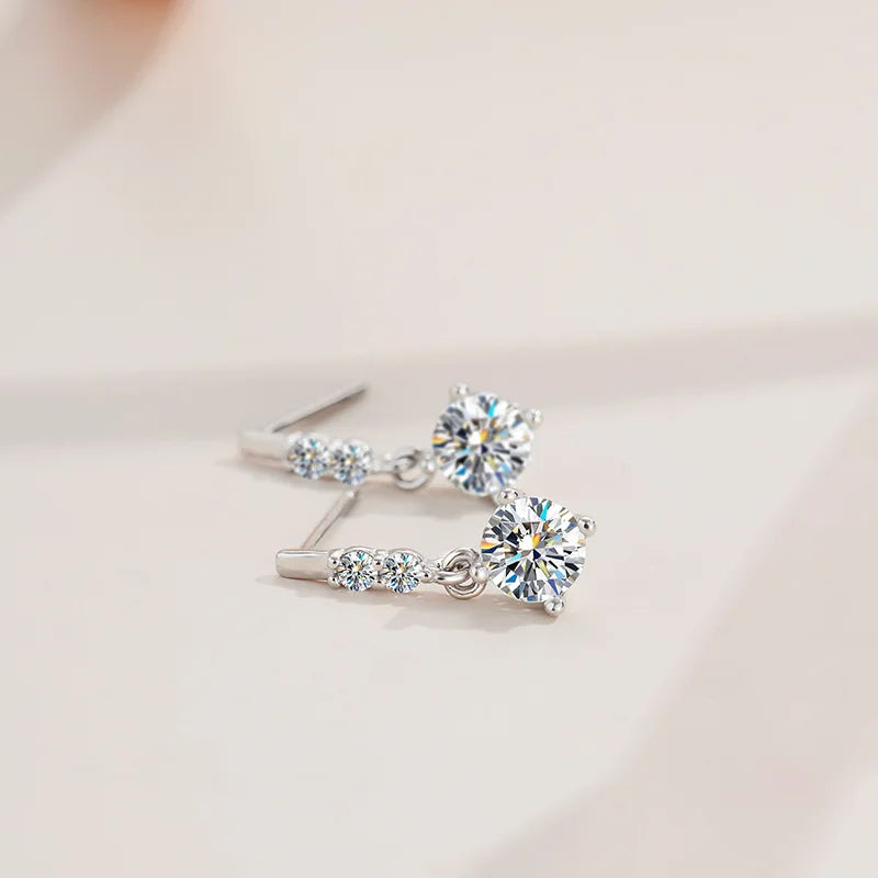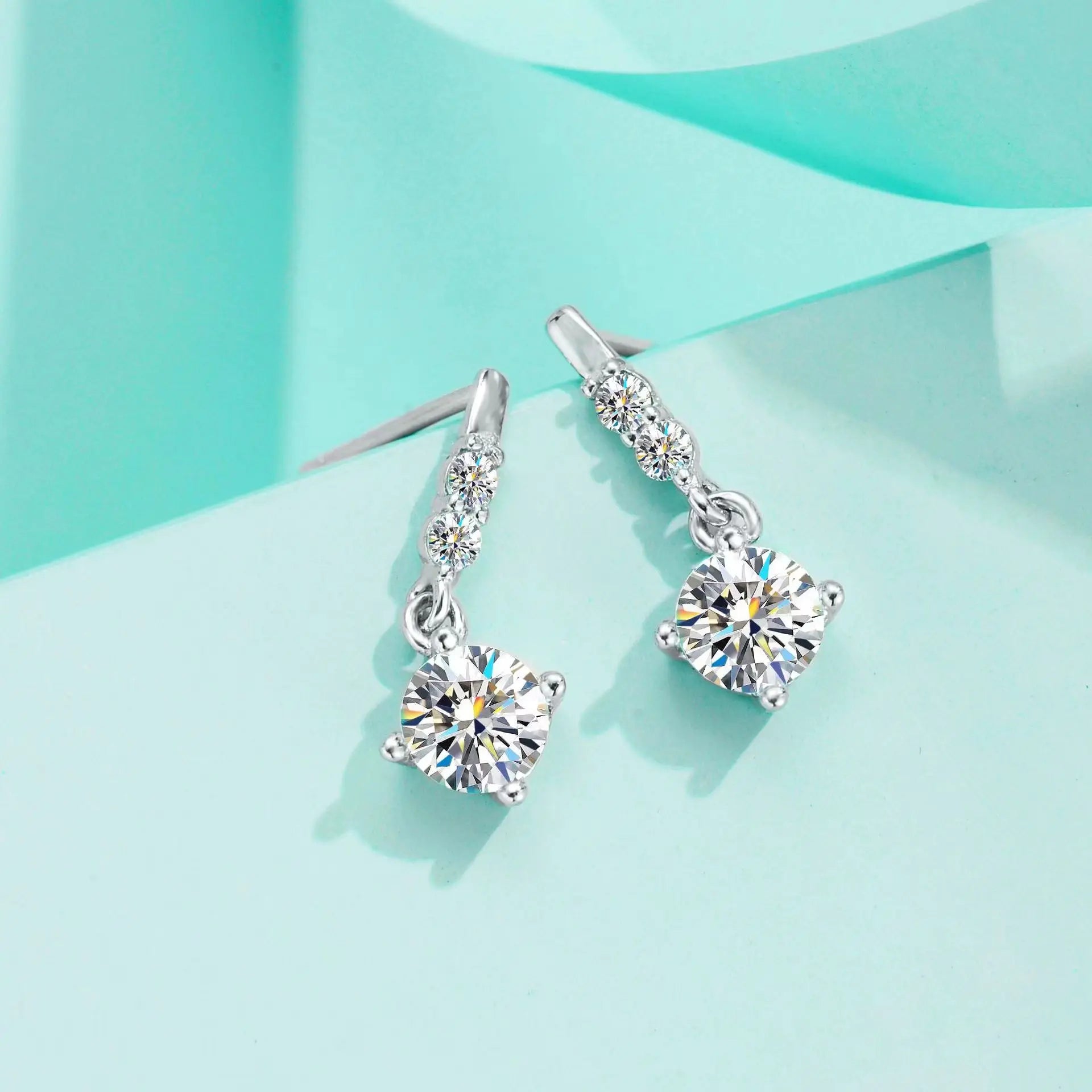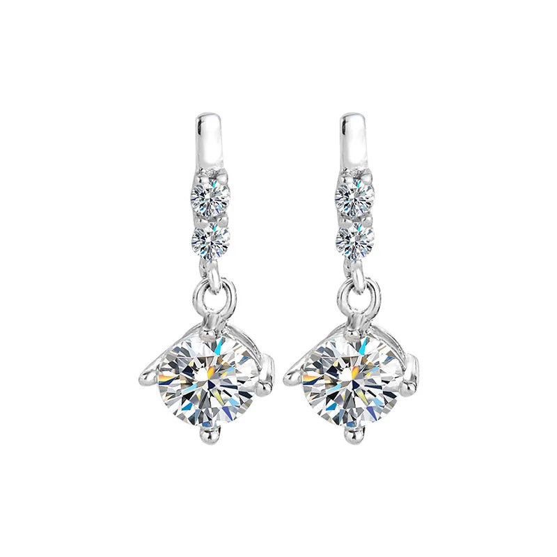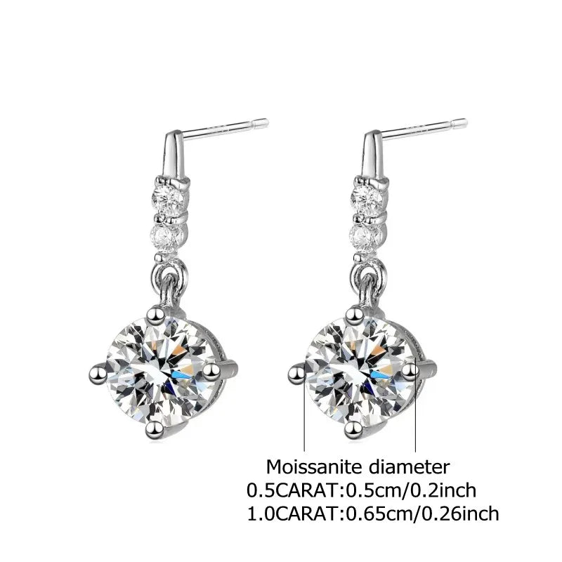 925 Sterling Silver Moissanite Diamond Four-Claw Pendant Earrings Fashion Casual High-end Light Luxury Niche Gift for Mom