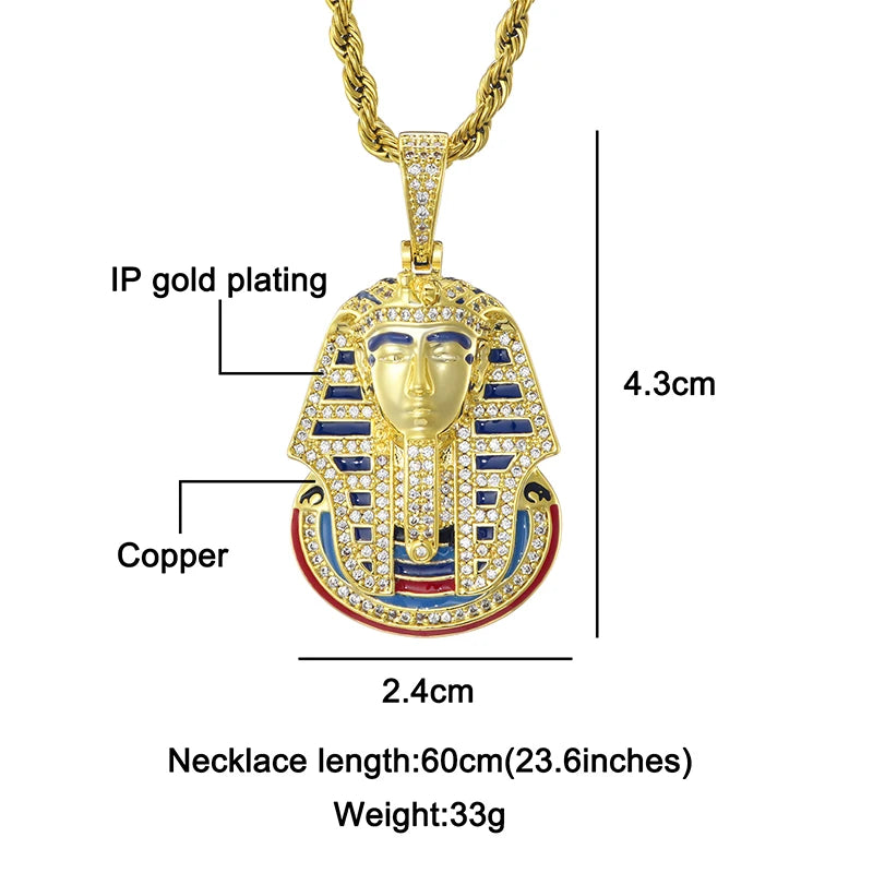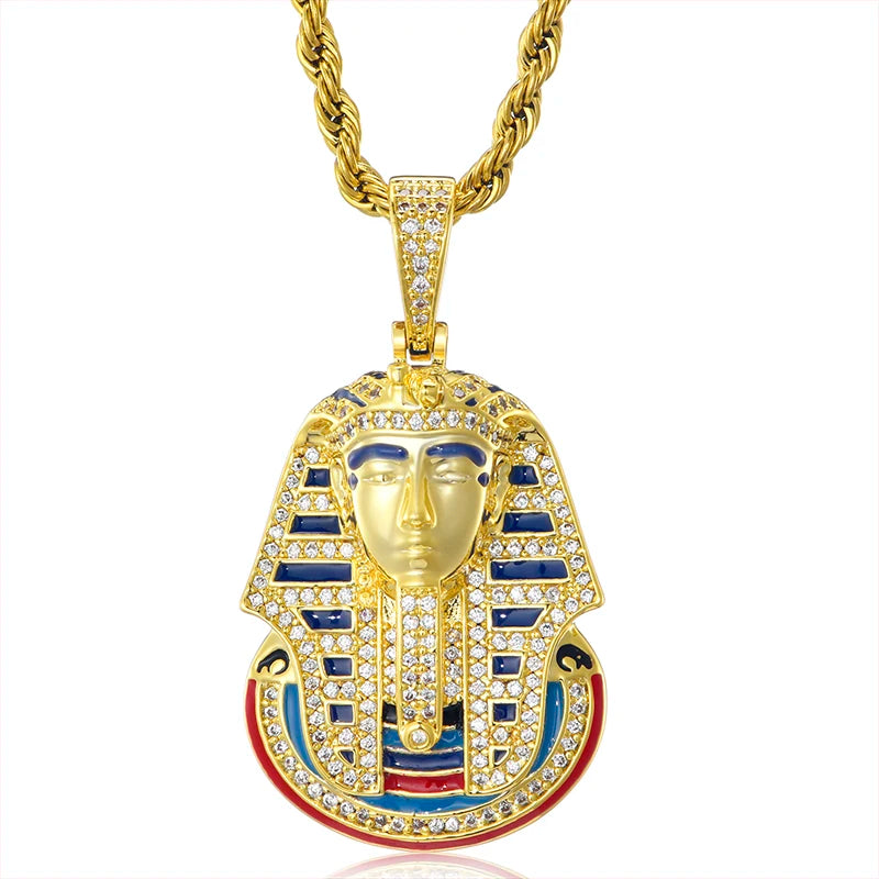 New Iced Pharaoh Pendant & Necklace Iced Out Cubic Zircon Stones Gold Silver