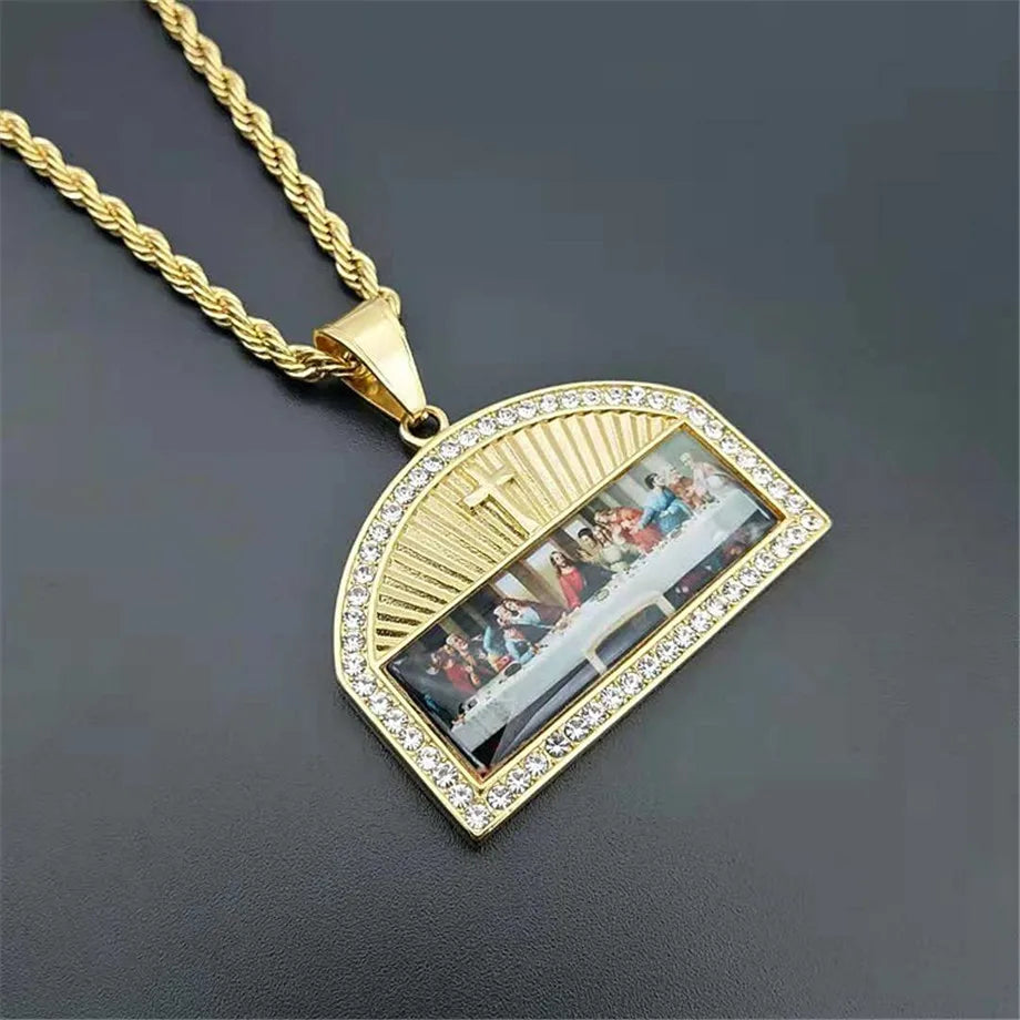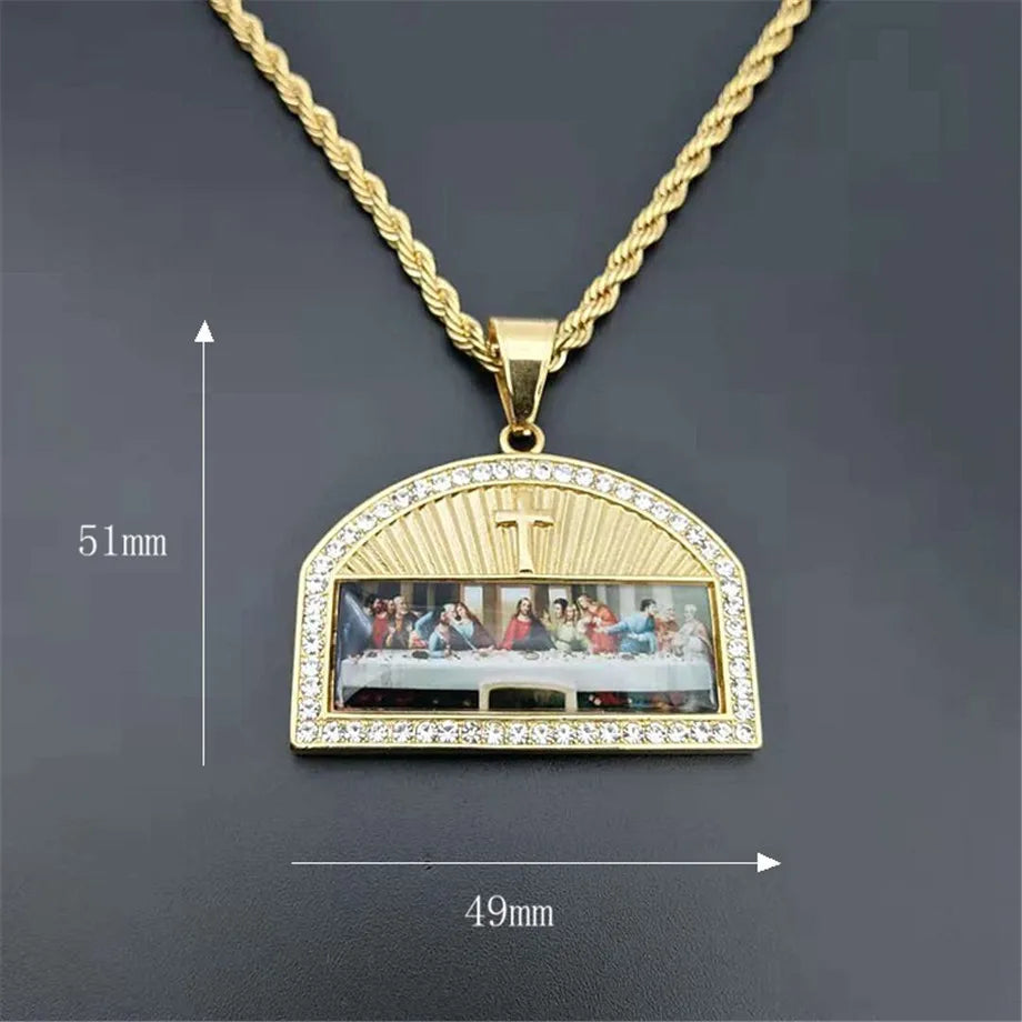 Iced Out The Last Supper Pendant Necklace Gold Color Stainless Steel