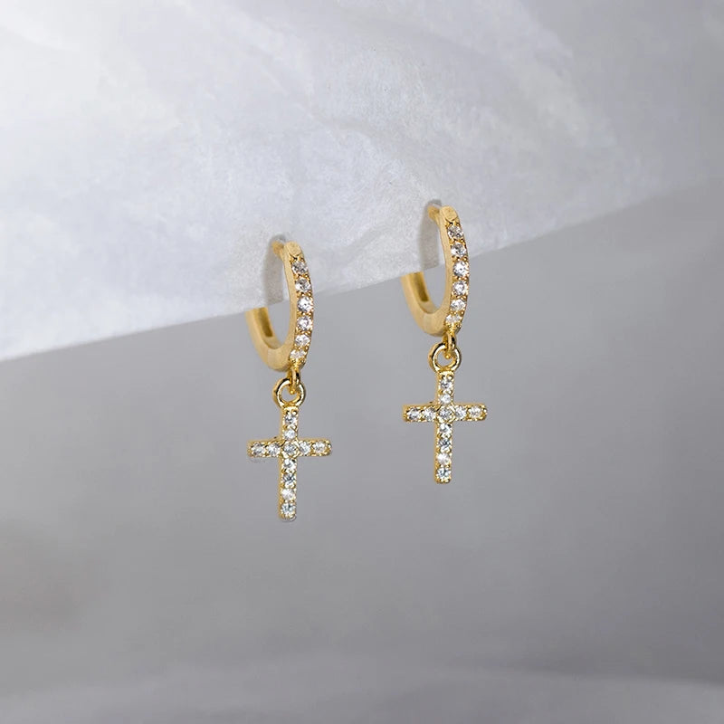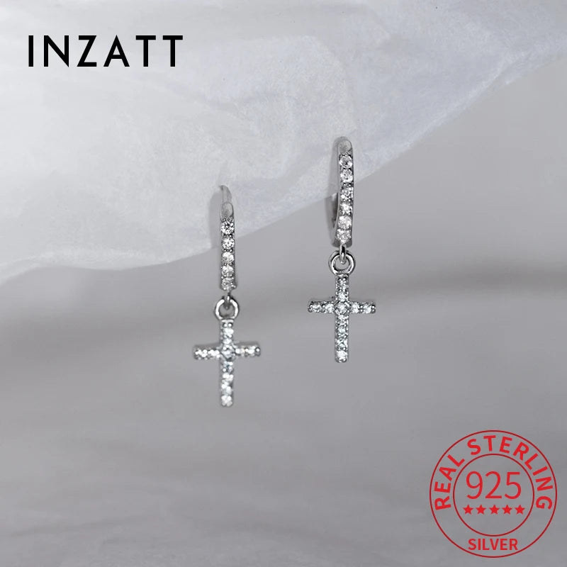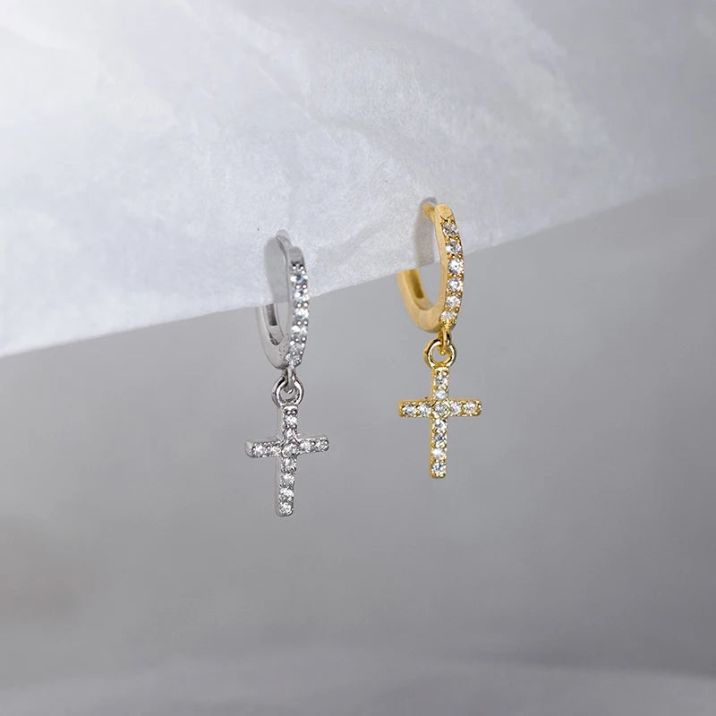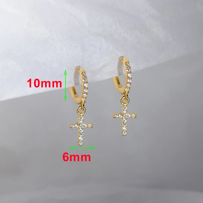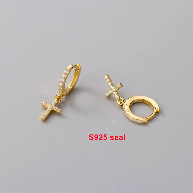 Real 925 Sterling Silver Zircon Cross Pendant Hoop Earring