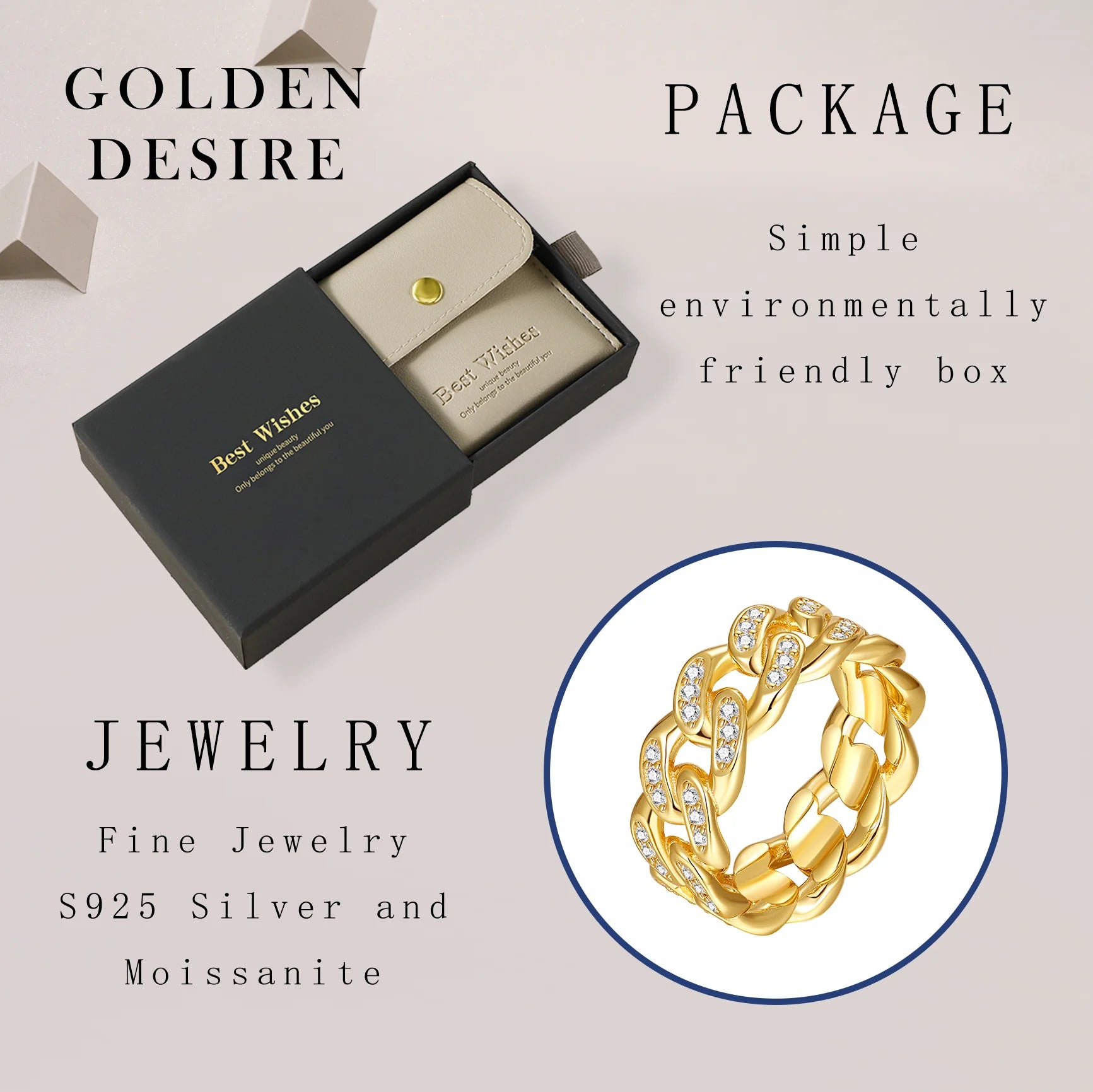 S925 Sterling Silver 18K Gold Plated Moissanite Cuban Chain Ring